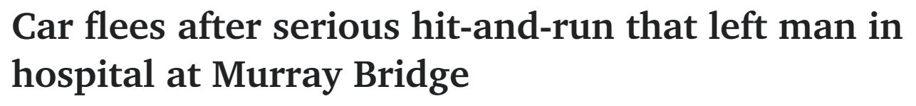 • Murray Bridge发生交通肇事逃逸事故,一男子被送医!