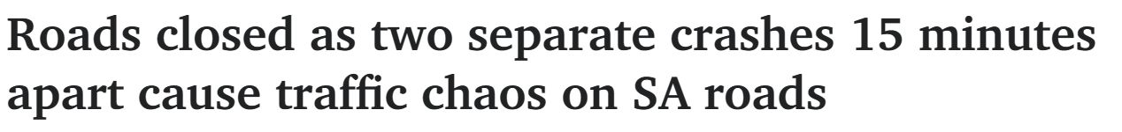 周日晚,在阿德莱德最繁忙道路之一,以Murraylands上发生两起车祸,一名行人和一名摩托车手受伤严重。 第二起车祸发生在傍晚7点刚过时,Mannum的King George St接到报警,称一辆汽车撞上一名行人。 ...