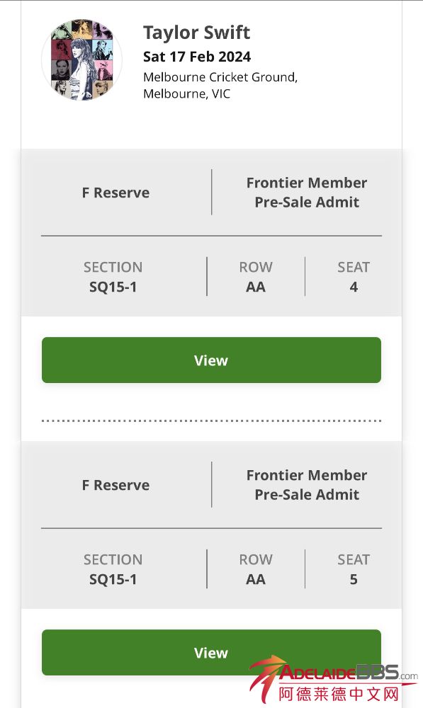 泰勒演唱会门票 2.17墨尔本场 原本买了准备那时候去 然后现在要回国 出票 440两张~ 看台第一排! 视野绝对好