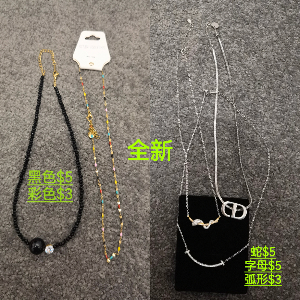 耳环6对$20 项链6条$30 手链两条$5 全新闲置 不包邮,邮费$10 可自取或定时间送ct 微信:madwoman-13