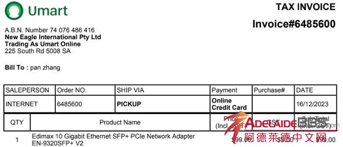 型号:Edimax 10 Gigabit Ethernet SFP+ PCIe Network AdapterEN-9320SFP+ V2 原价100,80出 0450630907 短信练习