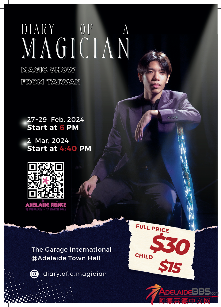 阿德萊德藝穗節|史無前例的魔術one man show 各位朋友們大家好! 我有一個魔術表演要向大家推薦,今年在阿德萊德藝穗節的魔術演出 “Diary of a Magician”絕對能讓您大吃一驚 本次演出由魔術師一人掌握全場,演 ...
