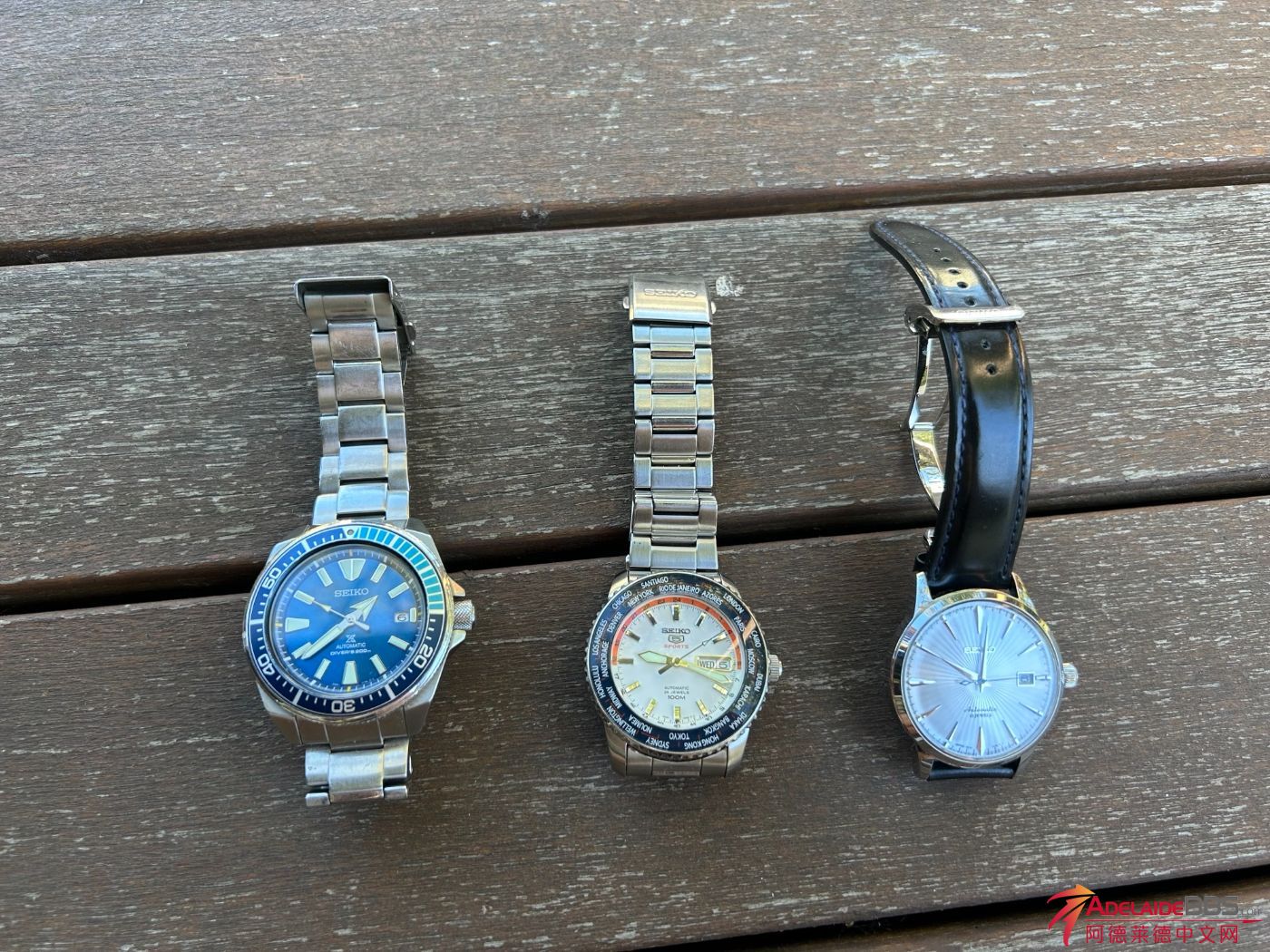 换了apple watch加上其他还有几块,便宜出几块闲置精工: 从左到右: 限量版的蓝珊瑚武士潜水表,很特别的蓝盘配黄针,非常漂亮。游泳玩水都很好,走时稳,尺寸43.8,$300可议 特别配色的老版5号世界时,当初 ...