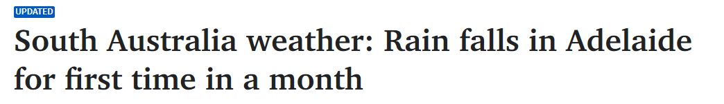 周日,阿德终于迎来了29天来的第一场降雨,周一上午,南澳各地仍有阵雨。 不过,由于阿德一夜之间降雨量不足半毫米,预计今天该州各地的降雨量也不会太多。 "南部农业区的降水量只有两到三毫米,仅 ...