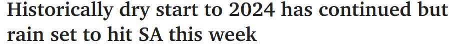 • 南澳各地本周将迎来降雨,6-8月降雨量会异常高!
