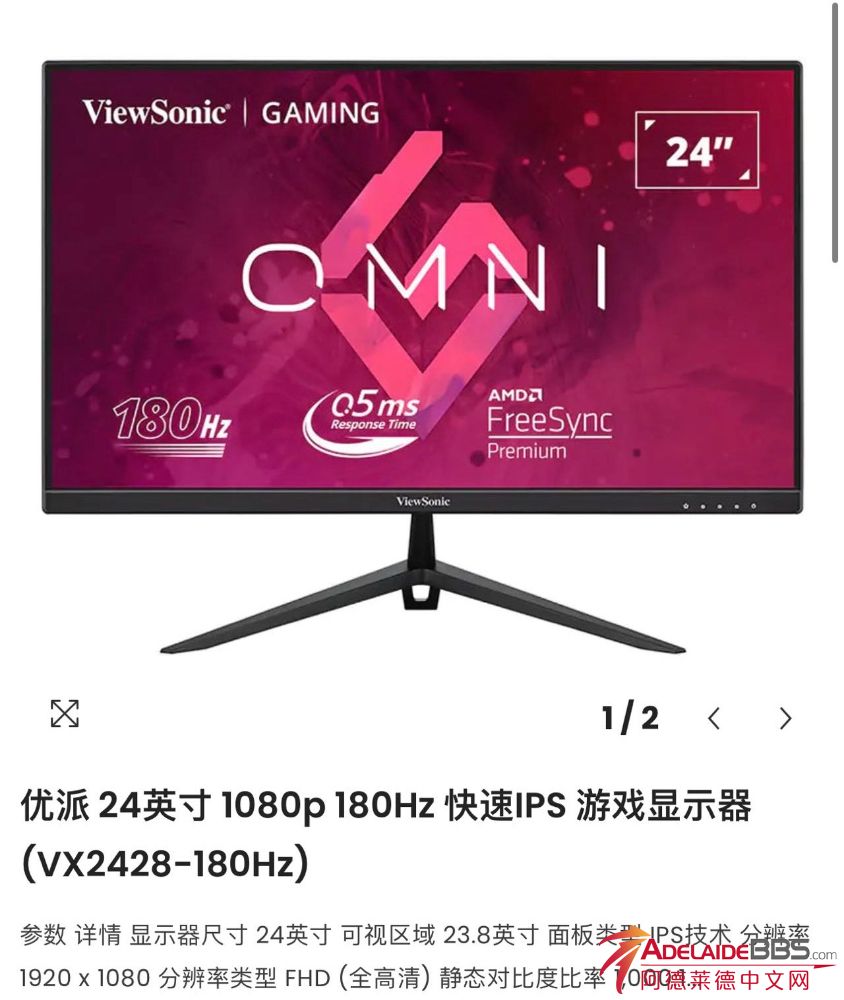 優派 24英吋1080p 180Hz 快速IPS遊戲顯示器 只用了两个礼拜 无任何问题 无盒子 0484225825 wx Bpn624 200刀