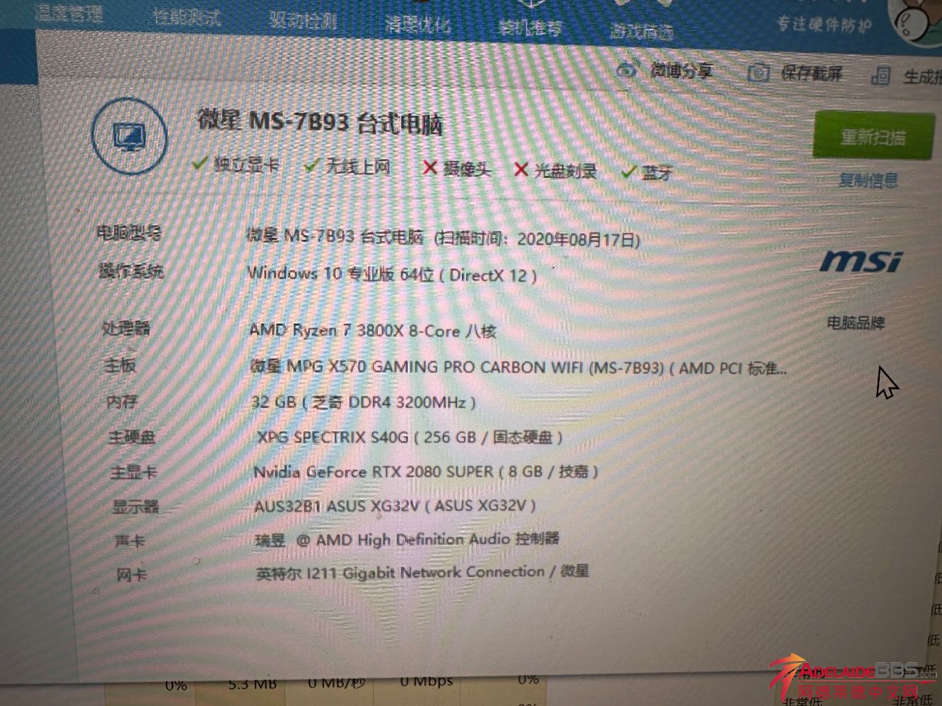 出一个2080super台式,配置如图,电源850w绝对够用 1200刀出 有意加vx sjh1204924848
