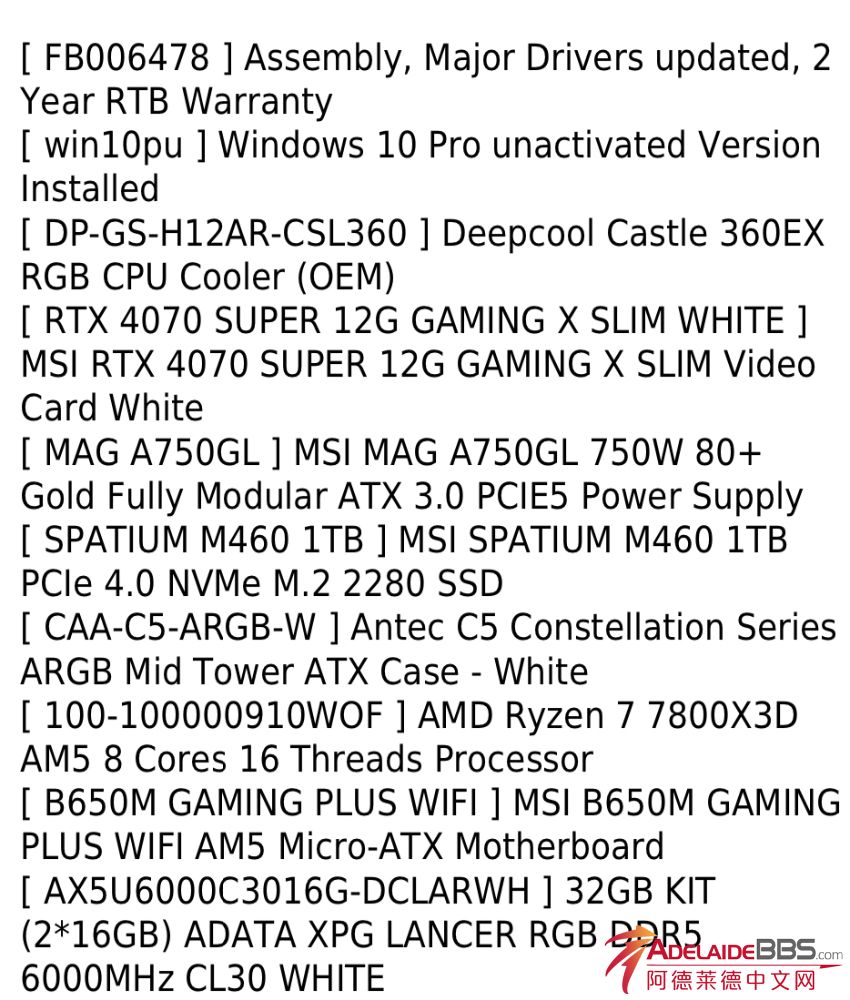 出白色海景房主机和显示器 主机7800x3d4070s 2300 显示器rog2k 240hz送价值100的显示器支架 800 打包有优惠 请短信:0419370554
