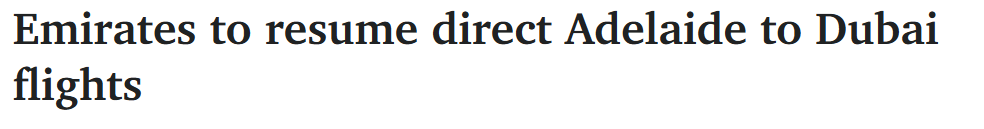 据报道,国际航空公司阿联酋航空已正式恢复往返阿德莱德的直飞服务,此举有望为南澳的旅游业带来上亿澳元的收入。 周一,阿德莱德机场的一位乘客Owen Wood表示,他希望这条航线的恢复能够降低机票价格。 另一 ...