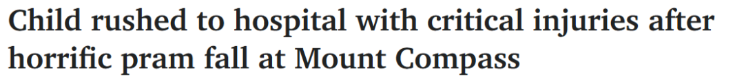 据悉,南澳Fleurieu Peninsula一名婴儿因婴儿车坠落而受重伤,被紧急送往医院,目前生命垂危。 这名婴儿不到一岁,周三下午3点前,在阿德莱德以南60公里的Mt Compass从高处坠落。 当他们到达事故现场(Mount C ...