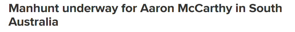 据悉,南澳警方正在搜捕一名通缉犯,这名30岁的男子因未执行逮捕令而被通缉。 据描述,McCarthy是白人,身高180厘米,体重约80公斤。脖子和头部有多个明显纹身,双臂也有纹身。 任何看到McCarthy或知道其下落 ...