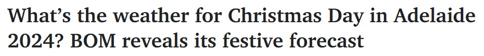 据悉,圣诞节当天阿德民众请准备好防晒霜,气温预计将升至35℃左右。 Clare的气温也将升高,紫外线指数预计将达到高水平,气温为35℃。 在Whyalla,圣诞节当天的气温预计将达到36℃,早晨有微风,风向为北风 ...