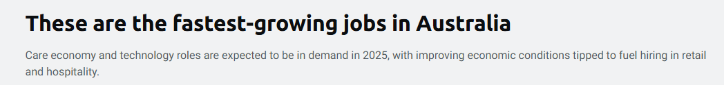 据悉,经济学家表示,如果您想在2025年找工作,零售、科技和护理领域可能是不错的起点。 SEEK高级经济学家Blair Chapman希望今年面向消费者的职位能够迎来大量招聘。 他说,与今年年初相比,2024年底可用职位 ...