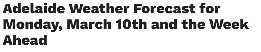 据悉,阿德莱德和南澳广大地区的居民应做好应对未来一周各种天气的准备。据气象局预测,气温变化和零星降雨将在不同时间影响该州的不同地区。 3月10日周一,阿德莱德早晨阳光明媚,但下午可能转为多云,并伴有阵雨 ...