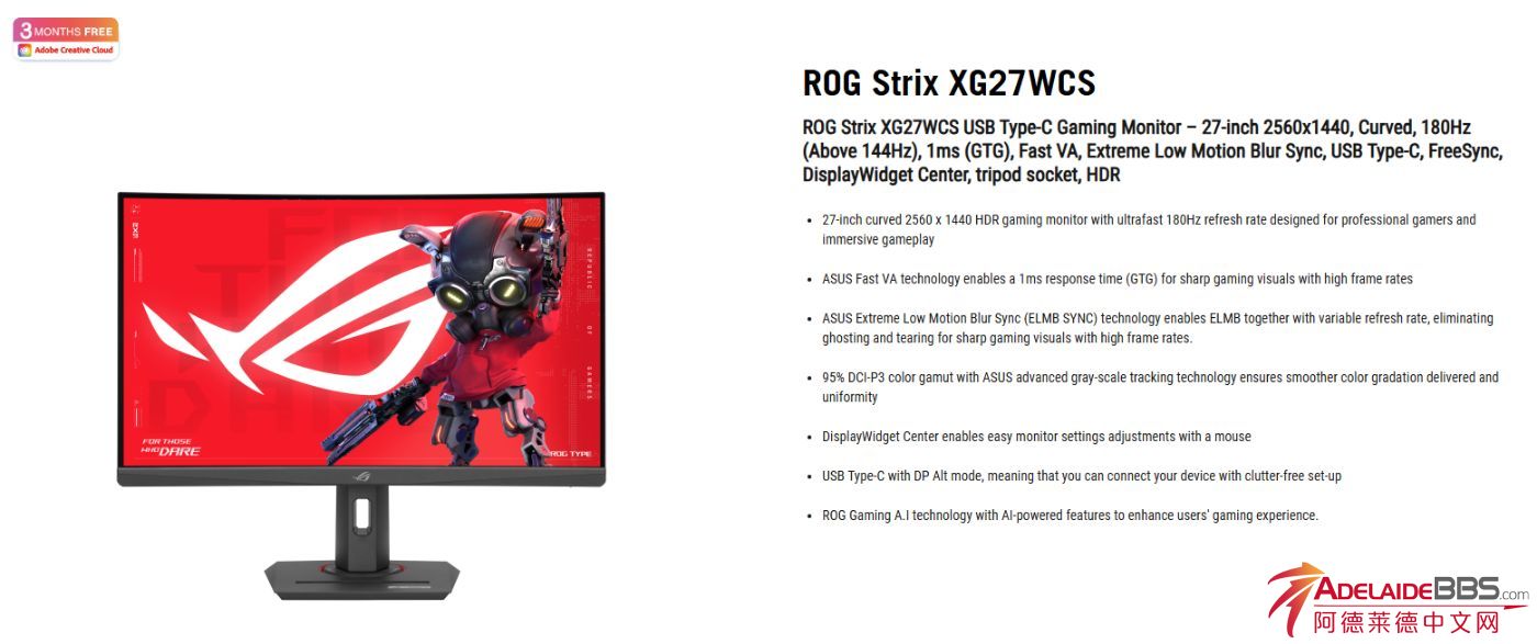 阿德莱德 city 出 XG32WCS 显示器 (已出) 32寸曲面屏,180Hz,2K 九成新,无划痕,无坏点只使用了3个月之后换了一直封箱 支持自提,可当面验机 感兴趣加wx私聊 wx: TobTech_adelaide