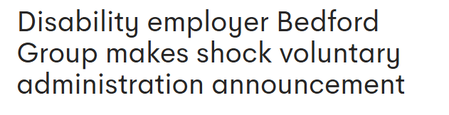 据《7 News》报道,南澳第二大残障雇主Bedford Group宣布进入自愿接管程序,这一"毁灭性"决定可能影响全州1400名员工。 尽管该集团拥有4700万澳元净资产,但首席执行官Myron Mann和董事会主席Janet Miller将现 ...