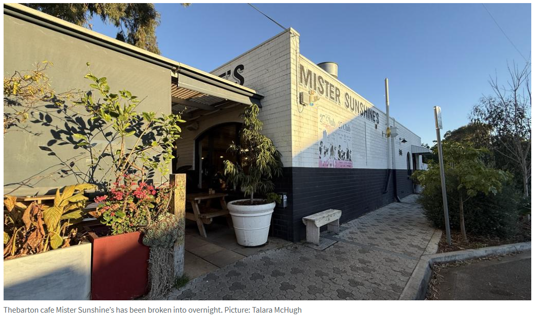 据报道,一男子在深夜闯入阿德一家咖啡馆企图盗窃收银机,随后被警方抓获。 警方称,监控拍到一名男子试图从Thebarton热门咖啡馆Mister Sunshine's盗窃收银机,并在警察介入时向警员投掷锤子。 他被拒绝保 ...