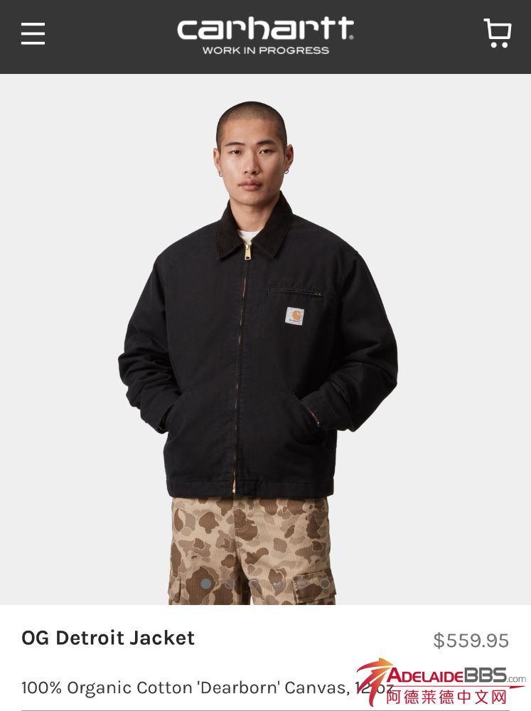 阿德莱德出Carharrt WIP Detroit OG jacket 刚买的吊牌还没摘,因不合身出。 官网已经断货,这款M码尺寸偏大,手量肩宽~53cm,胸围~137cm,衣长~70cm 联系微信zztt-0323