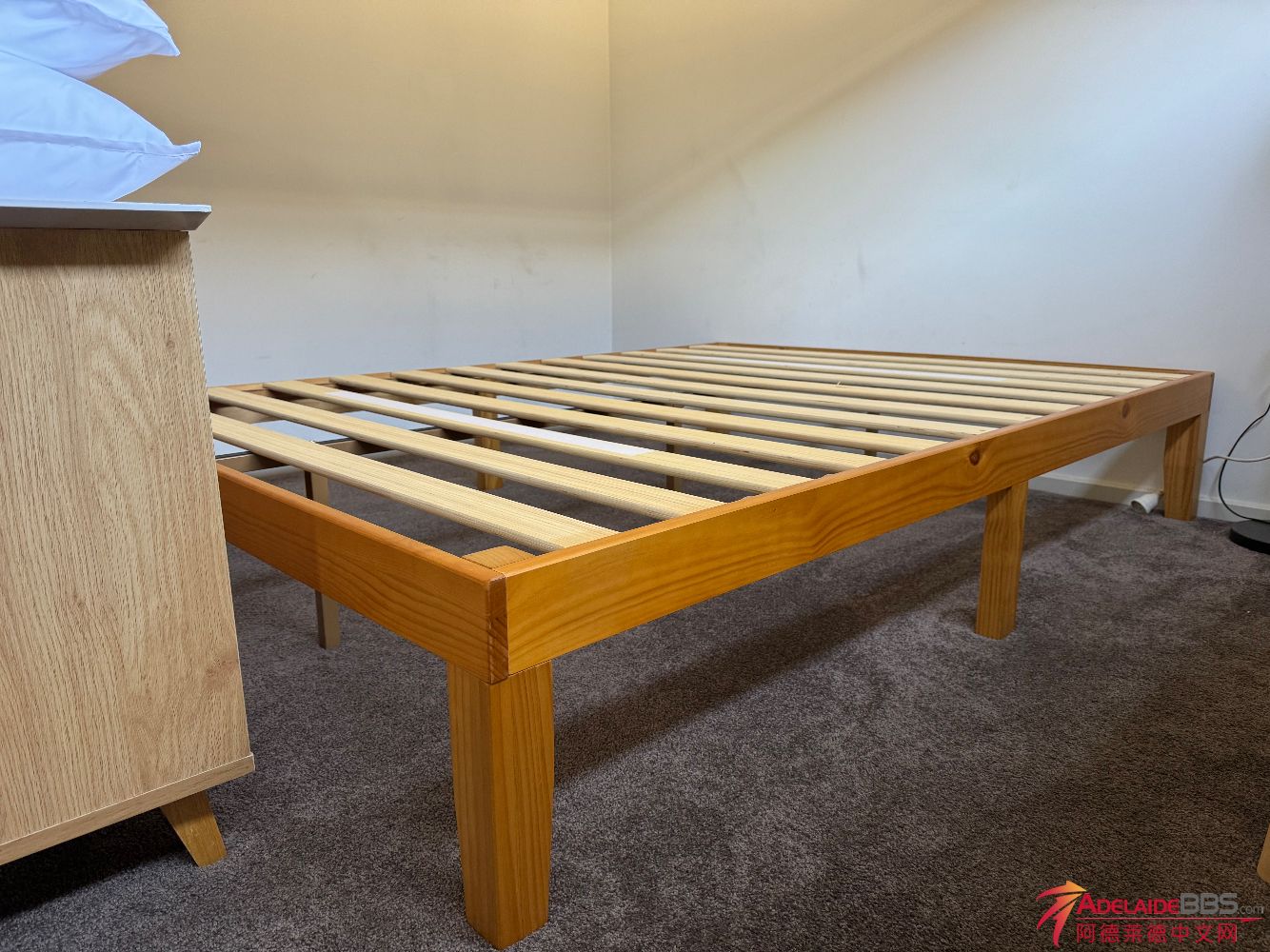 Queen size床架床垫出售,2013年底全新买的,父母过来住了一段时间后闲置。跟新的没差太多,但由于需要腾出房间,现$200澳元转卖。自取,坐标西南区5043。 有需要请短信联系0401196733。