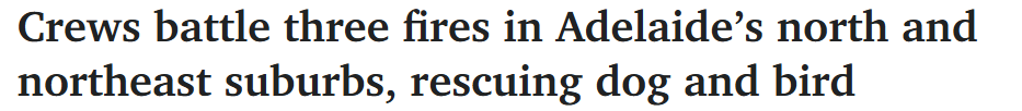 据9月16日报道,昨夜,阿德消防部门连续处置三起民宅火灾,并从燃烧的房屋中救出一狗一鸟。 凌晨3时前,消防队接报赶往Tea Tree Gully区Wattle Crescent St——该处民宅车库发生火灾。MFS消防员抵达时建筑已严重损 ...