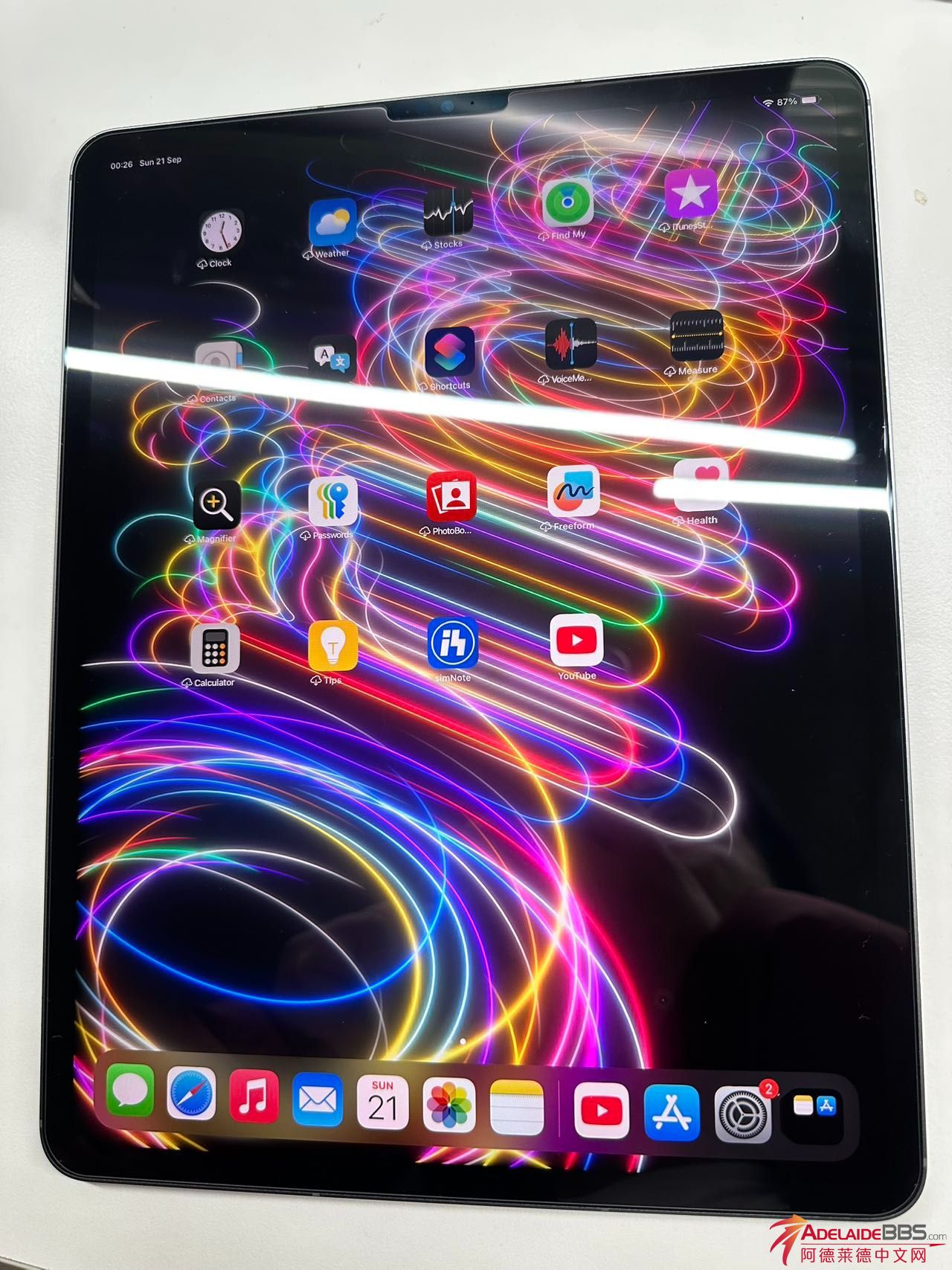 如图第六代iPad Pro 12.9inch,M2芯片,128GB WiFi+插sim卡 屏幕中间有小黑斑,如图所示。不是特别影响使用,触摸一切正常,所有功能一切正常。0划痕。 电池健康99%,电池循环42次。 价格1200刀,或者1250刀加 ...