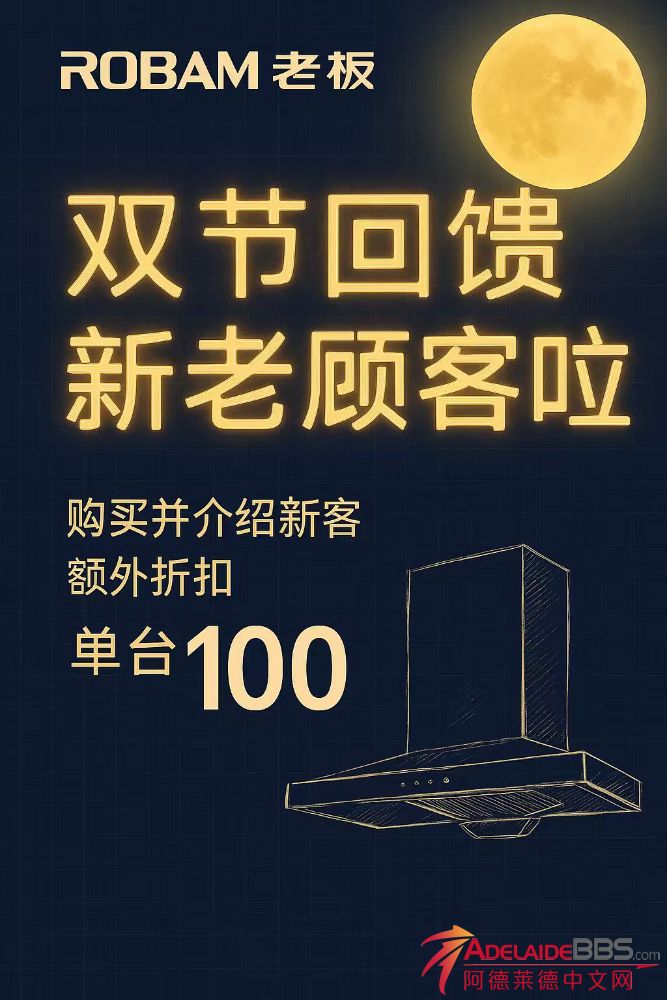 老板电器国庆中秋【双节福利】回馈! ROBAM老板热销四款 A837 / A8323 / A8303 / B410 单台直降 $200 介绍朋友购买再减 $100 还有限量“隐藏福利”,欢迎来聊~ 279 Grote St, Building Ideas Centre 到店可看 ...
