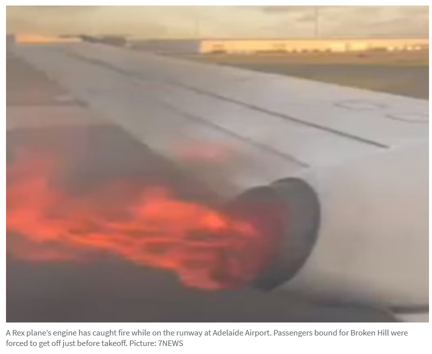 据悉,周三早晨7时,Rex航空ZL4818航班正准备从阿德莱德飞往Broken Hill,此时故障指示灯显示左发动机异常。飞行员立即中断起飞并迅速关闭发动机,导致内部未燃烧的燃料起火。 乘客通过前部舷梯撤离至滑行道,随后 ...