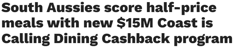 据《glamadelaide》报道,南澳一项旨在帮助受藻华影响的沿海餐饮企业新计划正式启动。这项耗资1500万澳元的"海岸在召唤"餐饮返现计划将惠及当地30万居民,在参与活动的沿海咖啡馆、酒吧、餐厅、俱乐部及外卖门店 ...