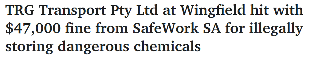 据报道,阿德一家主要运输公司因在郊区场地存放11个满载挥发性化学品的货运集装箱,被处以4.7万澳元罚款。 南澳就业法庭于10月10日对该案件作出判决。副院长Brian Gilchrist法官在庭审中指出,尽管事故发生的 ...