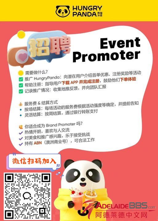 派发礼品,拉新注册。 时间灵活可调 锻炼交际能力 感兴趣的小伙伴请添加微信,或短信息至:0435 056 531 (仅信息)
