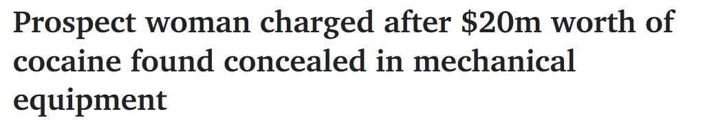 据报道,澳大利亚联邦警察指控一名30岁的Prospect女子涉嫌参与价值2000万澳元的可卡因走私活动。 该女子于周二被控三项罪名,涉及企图走私62公斤可卡因未遂——这些毒品被发现藏匿于一台机械车轮平衡机内。 ...