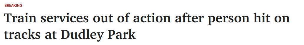 • 阿德发生火车撞人事故,紧急服务响应致列车停运!