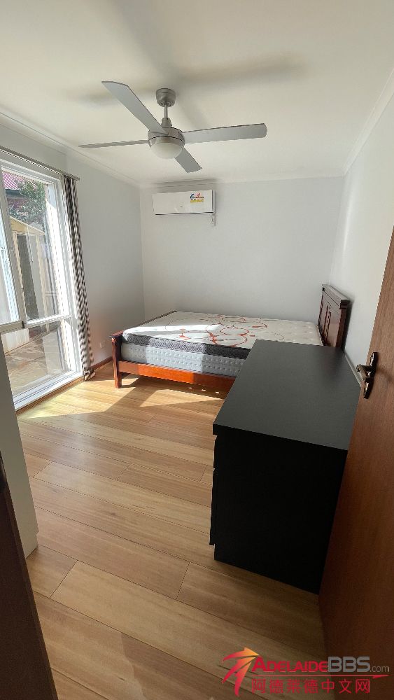 Ashford 3室一厅,距离city3公里,带全家具,照片里的家具全包括了,全新床垫和全新真皮沙发,有院子,shed, 还有一块菜地。 有一个undercover car park, 和路边车位。 要求:不吸烟,无宠物。 希望整租,单个房间只 ...