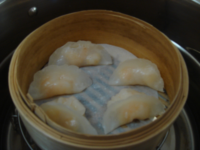 本帖最后由 zzy6113 于 2013-1-23 09:38 编辑 今天小规模试做虾饺成功了! 虾饺皮: 50克澄粉+10克corn flour+100克开水,用筷子搅拌后,再加15克corn flour,揉匀后,加3克butter,再揉匀,切成10克/个剂子, ...