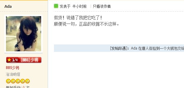 那啥,我不懂香奈儿也知道1200买不到香奈儿的包包吧~那孩子明显心理素质不够强悍,要不没事儿那么凶,还删嘛帖子啊~ |