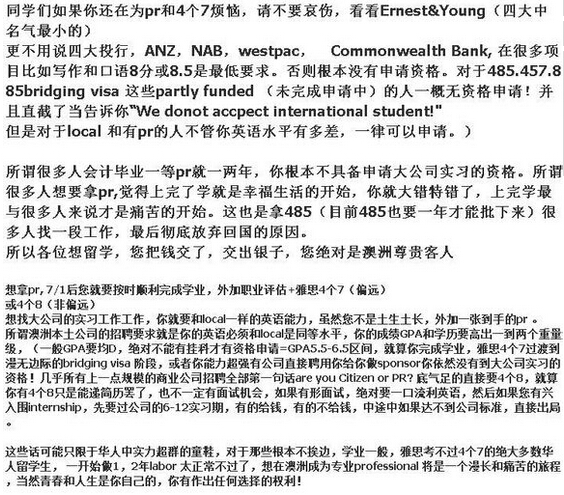 1、择校和选择专业时切勿盲目或者受中介主观诱导 大部分澳洲大学对于无论预科本科还是硕士的入学要求无一例外明明白白的写在官网各专业的entry reqirements里,包括雅思成绩,所需要的最高绩点,网上也有大量材料 ...